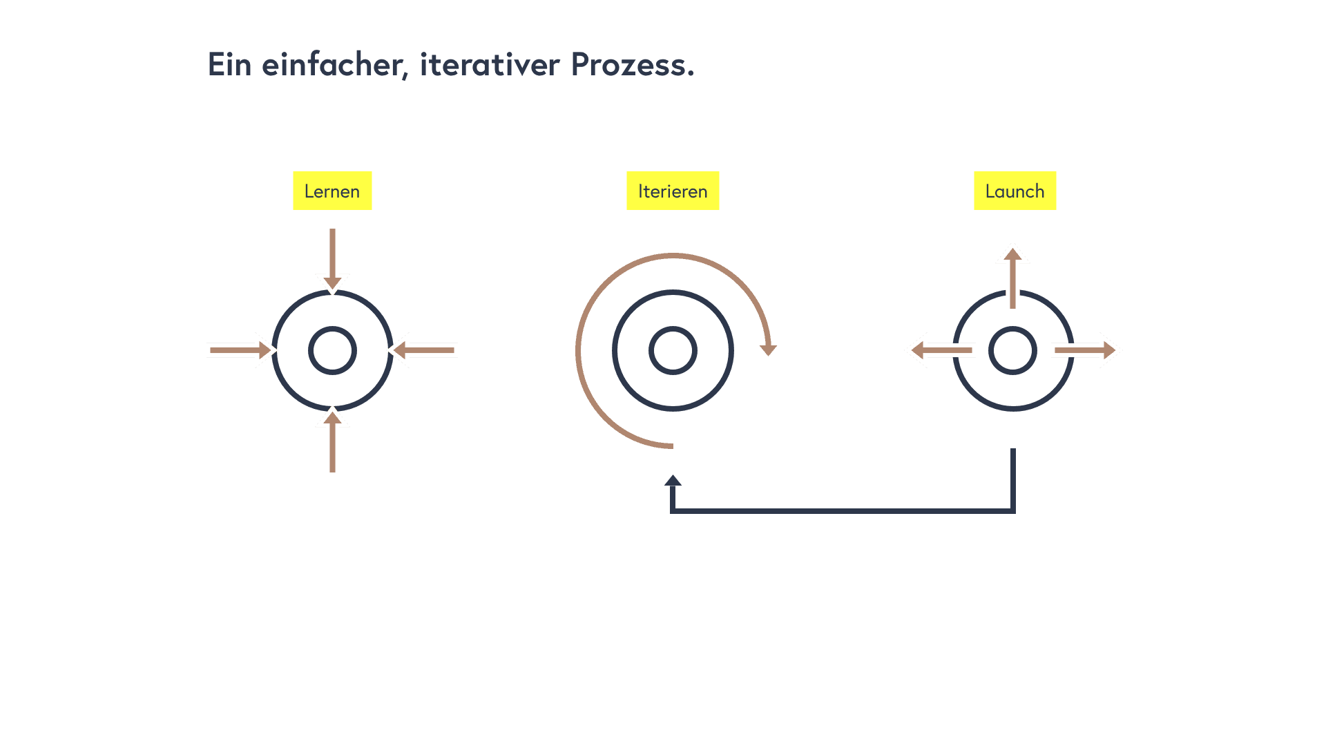 Unser Ansatz ist durch einen einfachen iterativen Prozess gekennzeichnet, der den Kern unserer Projektentwicklung bildet und dabei hilft, effiziente und effektive Lösungen zu liefern. Dieser Prozess ist in drei Hauptphasen unterteilt: Lernen, Iterieren und Launch.